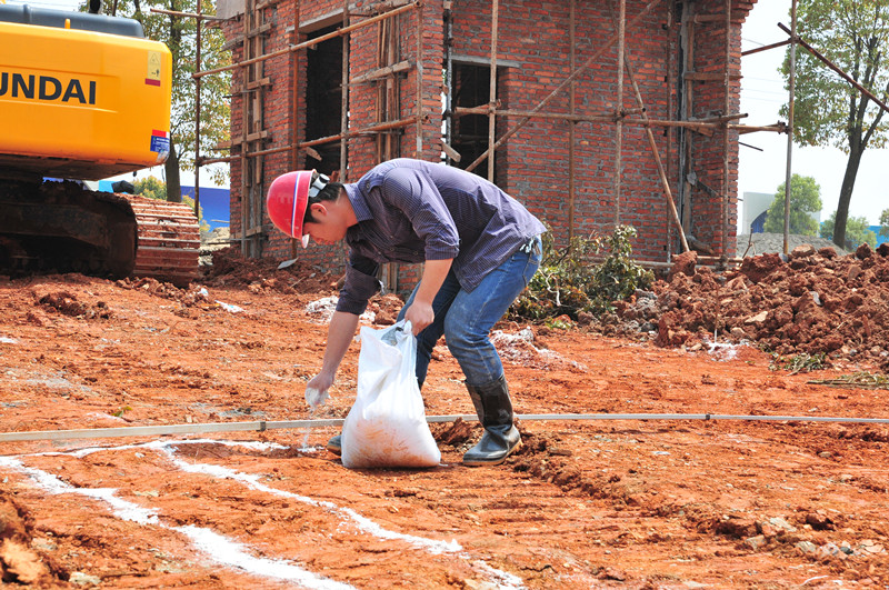 胡明同志在共青項(xiàng)目主動(dòng)學(xué)習(xí)測(cè)量放線業(yè)務(wù)知識(shí)