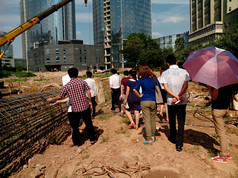 圖為: 林群杰副總經理會后帶領新員工參觀中順大廈的施工現(xiàn)場